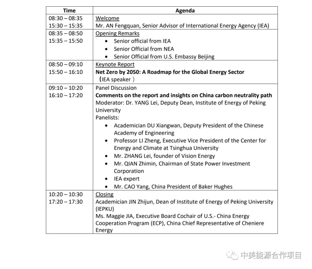 In order to implement the new green policy,control and reduce green house gas emissions, reverse the trend of global temperature rise, accelerate the world to a better zero carbon era, the International Energy Agency (IEA), Institute of Energy of Peking University(IEPKU),US-China Energy Cooperation program (ECP) and China Energy News will co-host “The Launch of Net Zero by 2050: A Roadmapfor the Global Energy Sector” at Peking University on June 8,2021. Experts and representatives from International Energy Agency (IEA), National Energy Administration(NEA), embassies in China, Chinese and international energy enterprises and medias will attend the meeting. ”Net Zero by 2050: A Roadmap for the Global Energy Sector” will be issued and domestic and international energy experts will be invited to have the discussion on the global carbon peak, carbon neutralization and other topics.