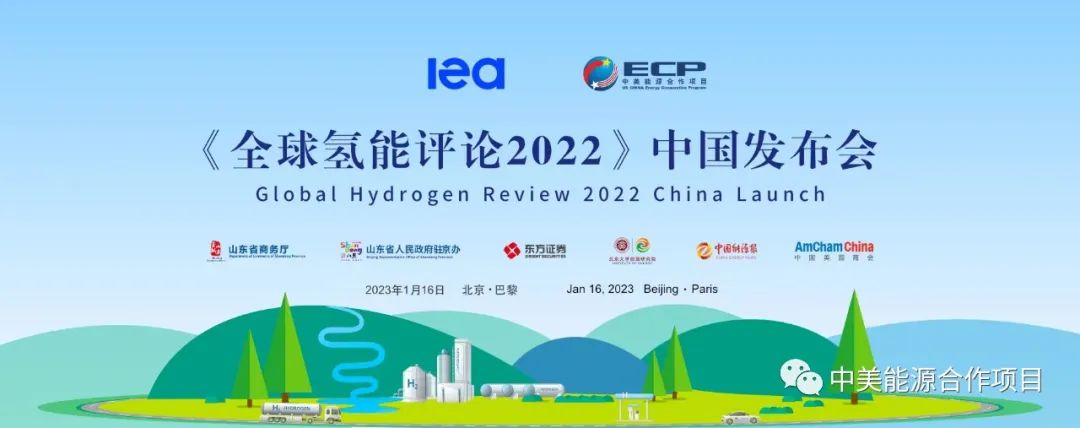The IEA Global Hydrogen Review 2022 China Launch Event will be held by the International Energy Agency (IEA) and the U.S.-China Energy Cooperation Program (ECP) in Beijing and Paris at 4pm-6pm Beijing Time and 9am-11:00am Paris Time both in Chinese and English on Jan. 16, 2023.